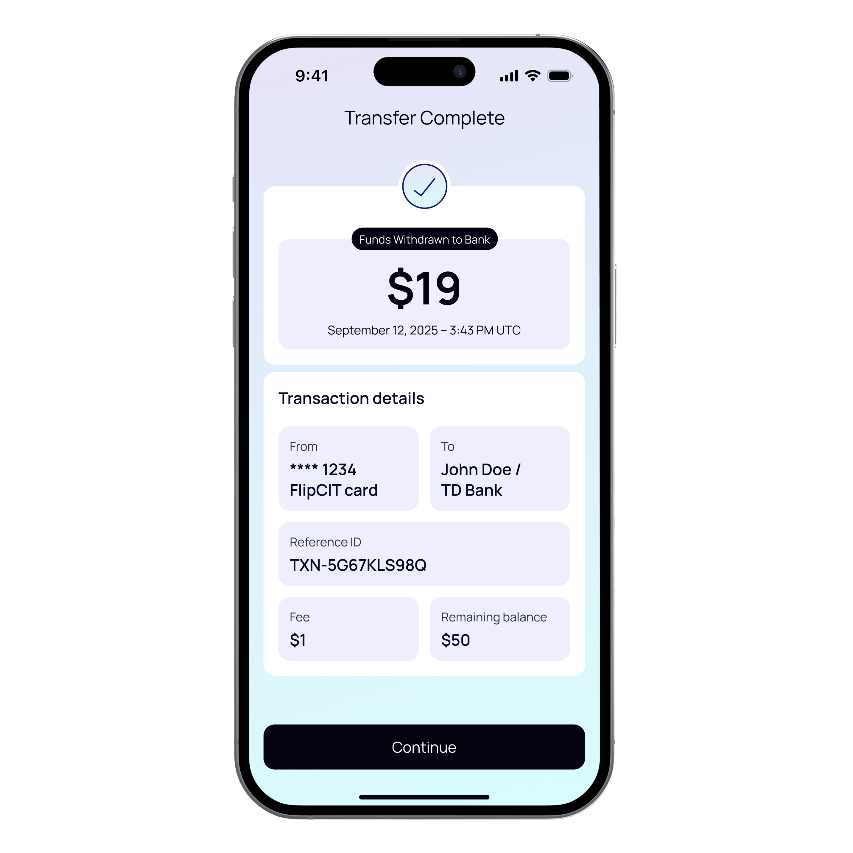 Funds are immediately available on your FlipCIT virtual card for global spending.