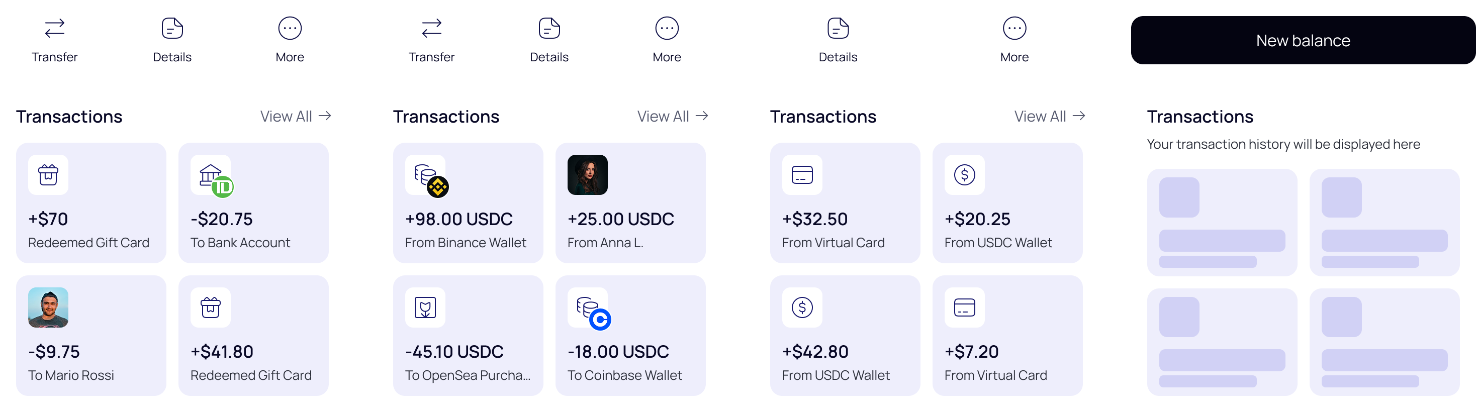 Convert balances to USDC, send directly to your bank, or transfer to friends – instantly.